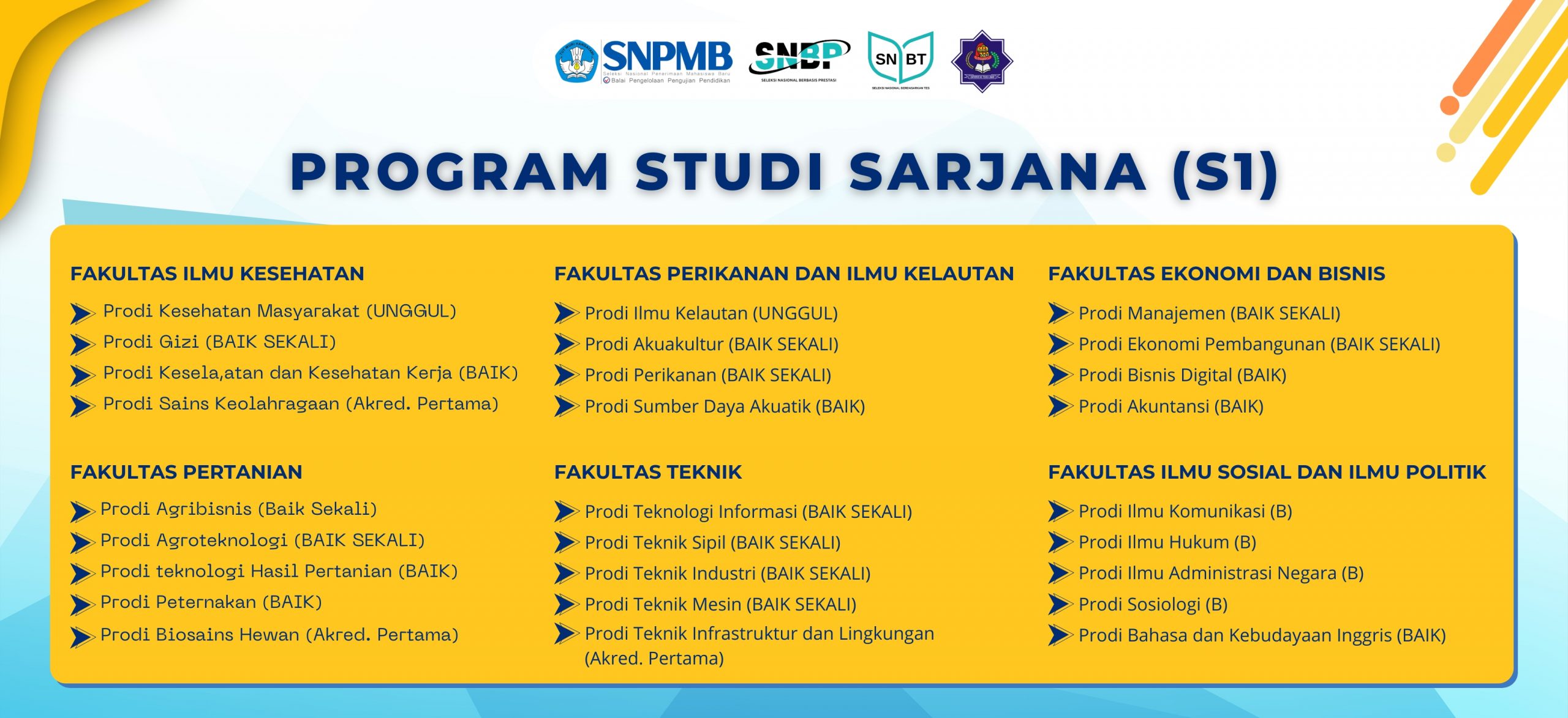 Universitas Teuku Umar saat ini telah memiliki 6 Fakultas, dengan 24 program studi Sarjana (S1) dan 4 program studi Pasca-Sarjana (S2). Wujudkan mimpi anda bersama UTU.