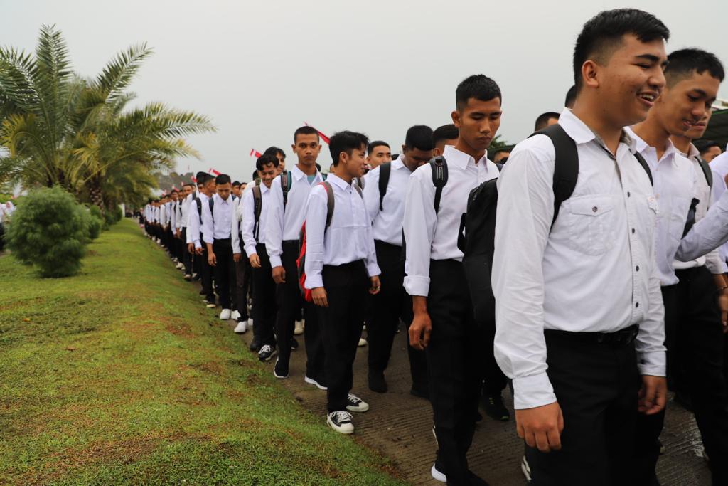 Diakhir sesi, Rektor bersama unsur pimpinan lainnya beserta seluruh mahasiswa baru Universitas Teuku Umar angkatan 2023 berangkat bersama-sama berjalan kaki menyusuri jalan setapak menuju tempat digelarnya kegiatan silaturrahmi yaitu di Auditorium Gedung Kuliah Terintegrasi, Kampus UTU. Sejuknya suasana pagi yang sedikit gerimis menambah keakraban antara Rektor serta pimpinan lainnya dengan para mahasiswa baru Universitas Teuku Umar. (Aduwina Pakeh /Humas UTU).