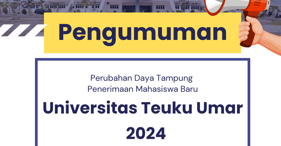 Berdasarkan Keputusan Rektor Universitas Teuku Umar, Nomor : 423/UN59/Dt.01/2024. Informasi daya tampung Penerimaan Mahasiswa Baru UTU adalah sebagai berikut: [maxbutton id=”7″ url=”https://utu.ac.id/wp-content/uploads/2024/07/SK-Perubahan-Kedua-Kuota-Daya-Tampung-PMB-UTU-2024-1.pdf” ]Read More