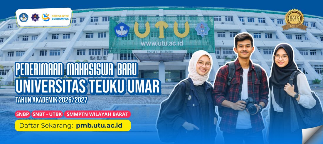 Universitas Teuku Umar (UTU) membuka Penerimaan Mahasiswa Baru Tahun Akademik 2026/2027 melalui berbagai jalur seleksi nasional dan wilayah, sebagai berikut: SNBP (Seleksi Nasional Berdasarkan Prestasi) SNBT–UTBK (Seleksi Nasional Berdasarkan Tes) SMMPTN Wilayah Barat UTU merupakan perguruan tinggi negeri yang berkomitmen menghasilkan lulusan unggul, berdaya saing, dan...Read More