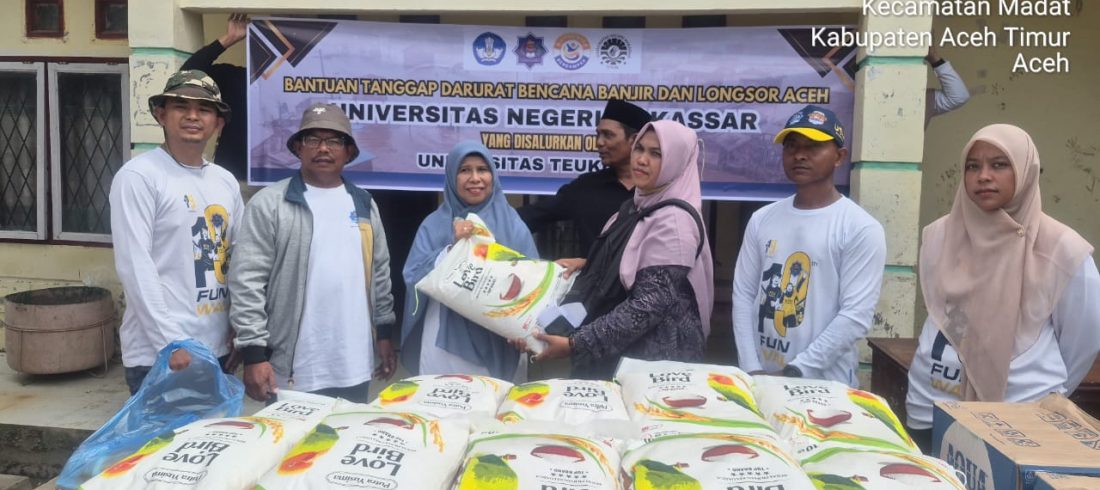 Bireuen – UTU | Universitas Negeri Makassar (UNM) menunjukkan kepeduliannya terhadap warga terdampak bencana banjir di Kabupaten Bireuen dengan menyalurkan bantuan kemanusiaan melalui Universitas Teuku Umar (UTU). Penyaluran bantuan tanggap darurat tersebut difokuskan di Desa Pineung Siribee, Kecamatan Samalanga, Kabupaten Bireuen, Provinsi Aceh, Jumat (16/01/2026)....Read More