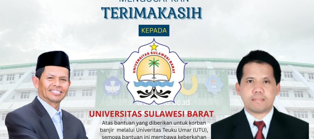 Meulaboh – UTU | Sinergi dan kepedulian antar-perguruan tinggi terus mengalir bagi warga terdampak bencana alam di Aceh. Rektor beserta seluruh sivitas akademika Universitas Teuku Umar (UTU) secara resmi menyampaikan apresiasi dan terima kasih yang mendalam kepada Universitas Sulawesi Barat (UNSULBAR) atas penyaluran bantuan kemanusiaan...Read More