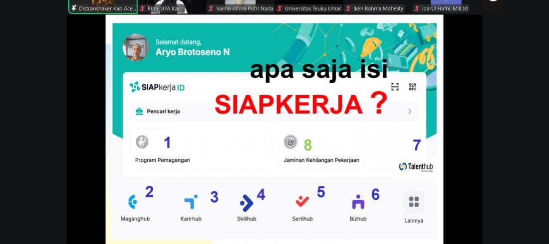 Meulaboh – UTU | Universitas Teuku Umar (UTU) melalui UPA Pengembangan Karir dan Kewirausahaan (PKK) Bidang Karir menyelenggarakan sosialisasi dan demonstrasi pengenalan Akun Siap Kerja secara virtual pada Senin (10/02/2026). Kegiatan ini bertujuan membekali mahasiswa calon wisudawan periode Februari 2026 dengan strategi dan kesiapan administratif...Read More