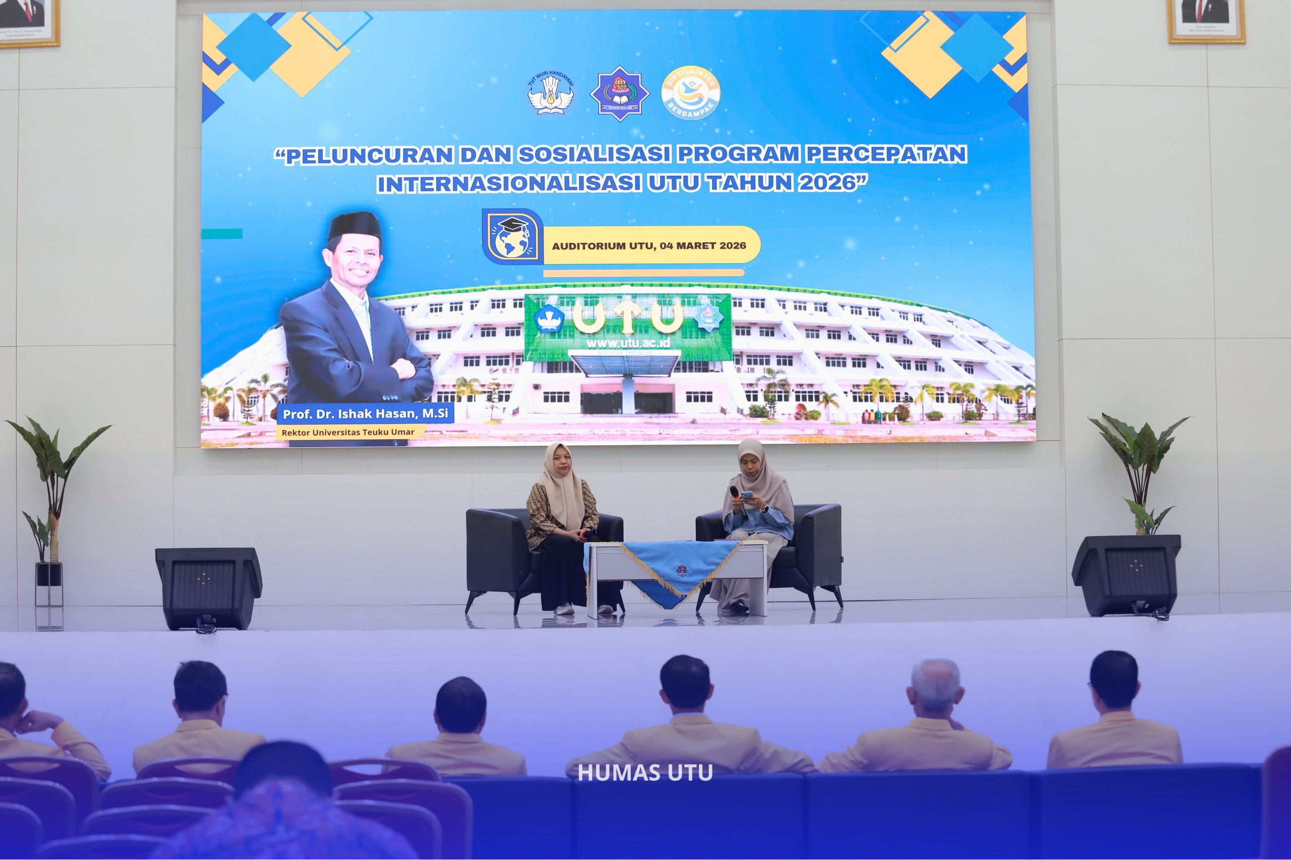 Meulaboh – UTU | Universitas Teuku Umar (UTU) resmi meluncurkan program percepatan internasionalisasi kampus di Auditorium Teuku Umar, Meulaboh, Rabu (4/3/2026). Langkah strategis ini diambil untuk memenuhi target World Class University sesuai mandat Kementerian Pendidikan Tinggi, Sains, dan Teknologi (Kemdiktisaintek).