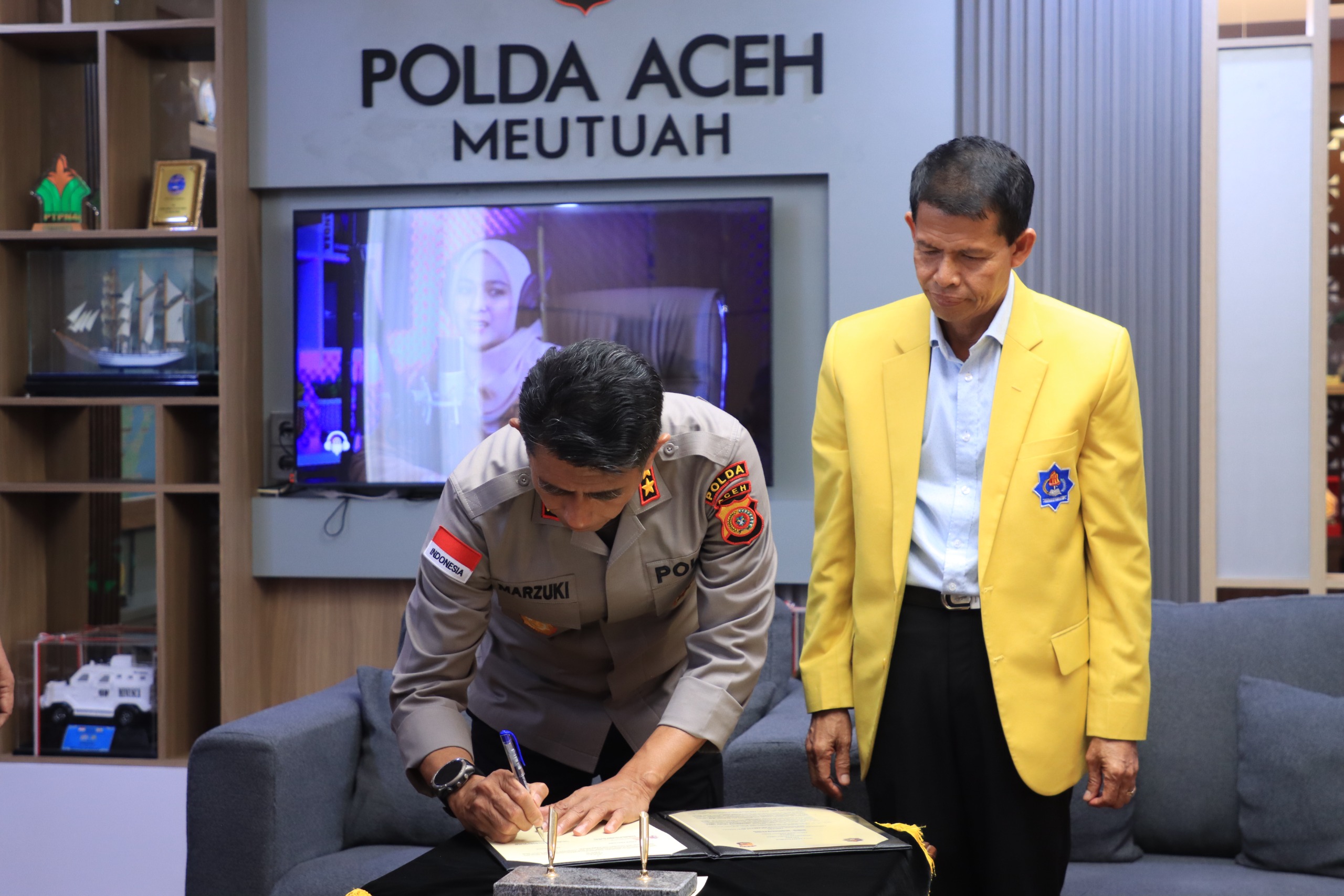 Penandatanganan Nota Kesepahaman (Memorandum of Understanding) dilakukan langsung oleh Rektor UTU, Prof. Dr. Ishak Hasan, M.Si., bersama Kapolda Aceh, Irjen Pol. Drs. Marzuki Ali Basyah, M.M., bertempat di Mapolda Aceh pada Selasa, 14 April 2026.