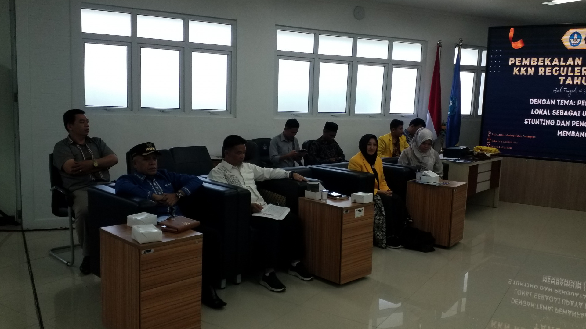 Turut hadir dalam kegiatan pembekalan KKN Reguler XX tahun 2023 Sekretaris LPPM-PMP, Herdi Susanto, ST., M.T, Korpus KKN dan Magang, Teungku Nih Farisni, SKM., M.Kes, Sekda Aceh Tengah, Camat, para pemateri dan seluruh Dosen Pendamping Lapangan. (Aduwina Pakeh / Humas UTU).